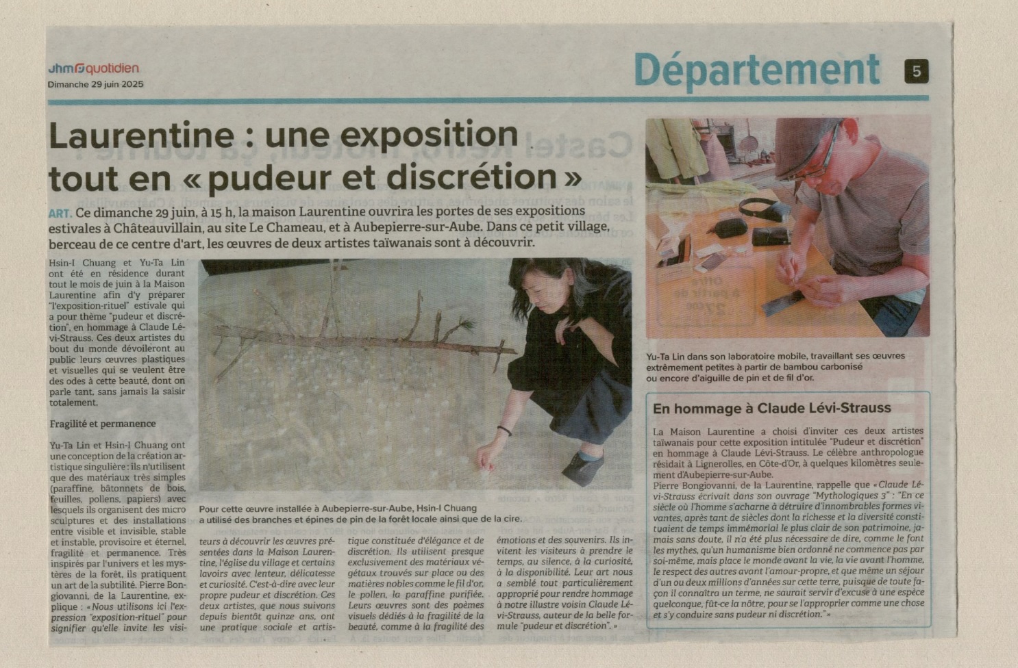 2025年夏天,原住民藝術家古睖・久古應法國知名藝術總監皮耶·邦焦瓦尼 (Pierre Bongiovanni) 與藝術中心主任瑪麗·索朗熱·杜貝斯 (Marie Solange Dubès) 的邀請,將於Maison Laurentine(洛宏汀莊園藝術中心)進行為期一個月的駐村創作。同時,他也將參與以「LES VERTIGES DE LA BEAUTÉ」(眩暈之美)為主題的第16屆國際藝術季(2025年6月30日至10月19日)。