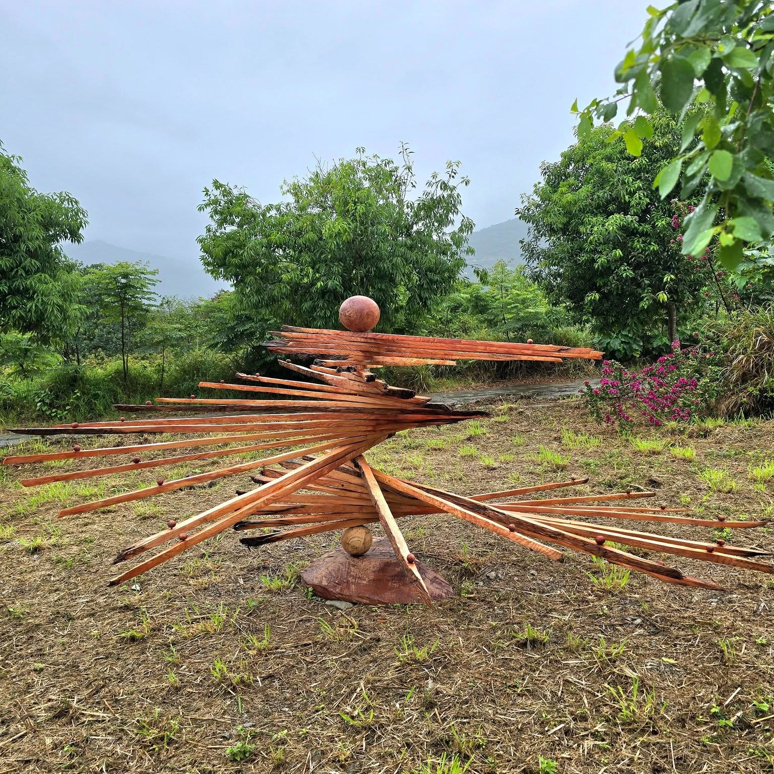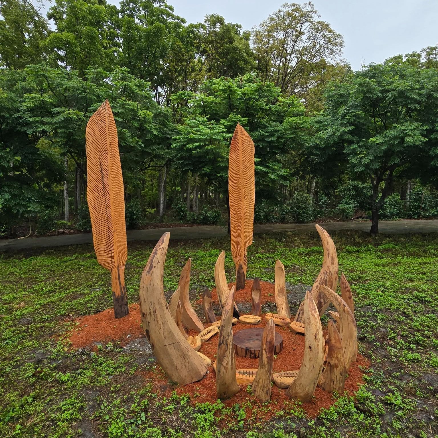 「其實,我的森林在海邊」,是伊命.瑪法琉繼2023年個展「生命只在此山中」之後,回到卡大地布的瞭望之地、回到生活於此的節奏裡,於2025 年展開的全新現地創作。作為至今仍舊堅持以「漂流木」為主體的創作者,伊命.瑪法琉始終跟隨漂流木特有的力量線,不論沉重或輕盈。這道力量線是森林在東台灣的地質與氣候條件下,置身於山脈的溪谷、太平洋潮汐與沿岸地形的多重作用力中,持續刻劃出的痕跡。