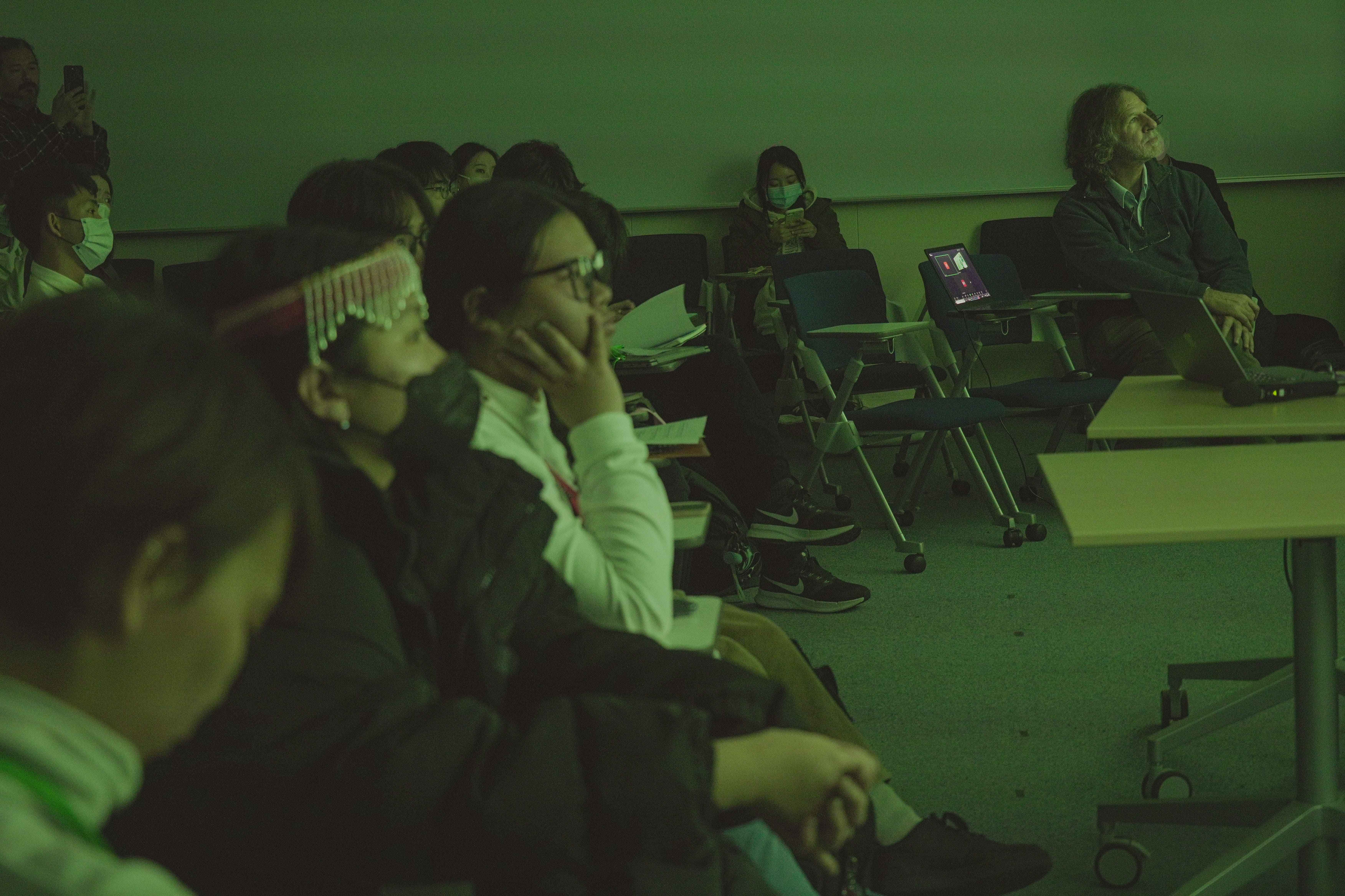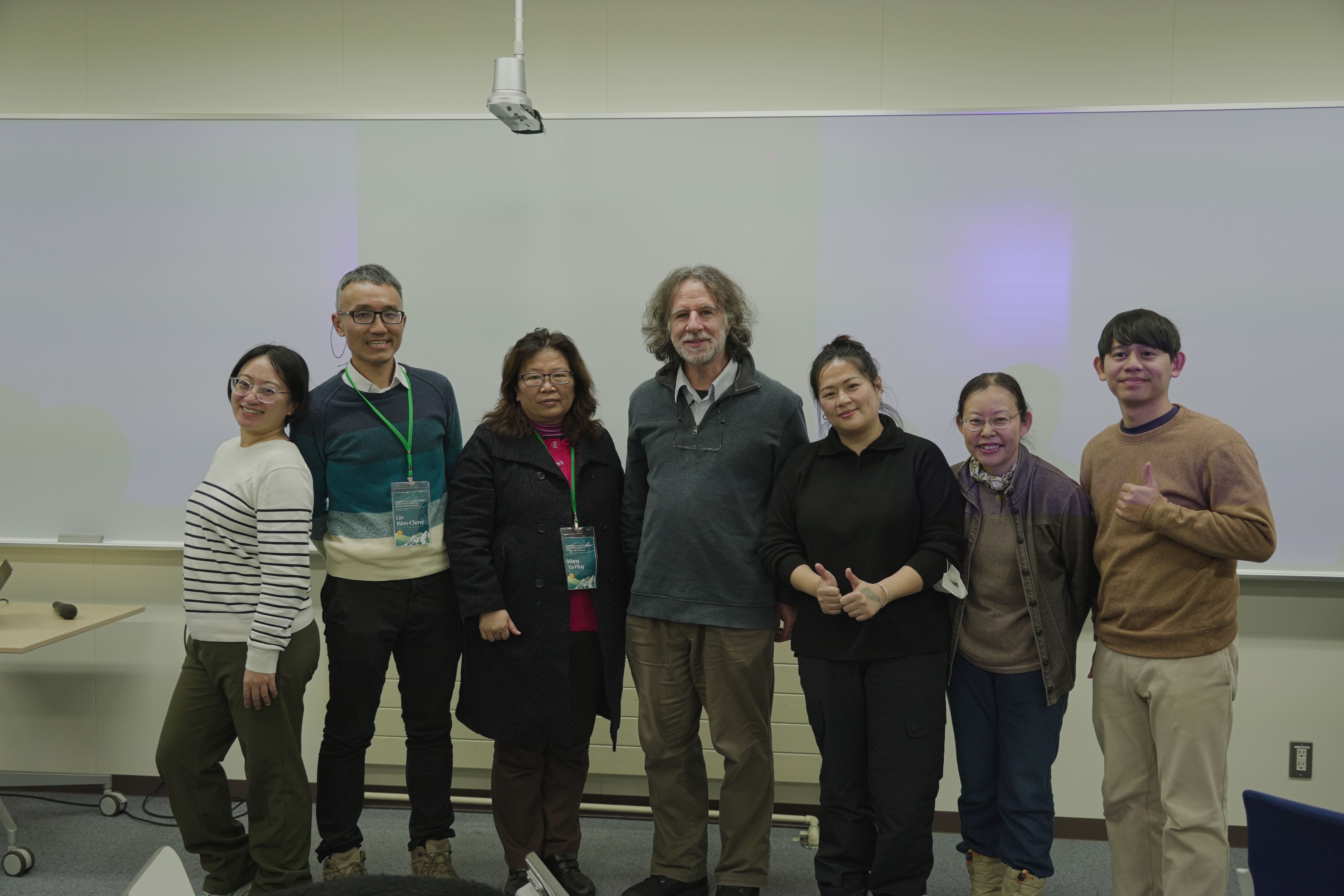 他曾在 2023 年前往泰雅族人生活的 Cinsbu(鎮西堡)部落,與長期鑽研多元民族文化的新竹高中老師林文正相遇,進而觀賞到我的紀錄片作品《揹獵物的女人》、以及錄像短片作品《我是女人,我是獵人》。2024年,落合研一開始策畫此兩部片於北海道大學放映,並邀請我與作品攝影師陳安琪前往交流,進行影像創作美學與原住民族文化之討論,本次交流計畫由此產生。