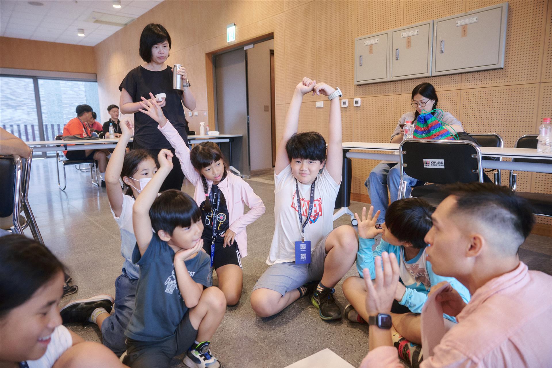 有些組別的孩子,顯然在上午的闖關中有建立連結,很快地就起身圍成一圈討論;但有的組別則是維持原本與父母同坐,無人起身,也相對安靜。在這樣的氣氛下,很難聽到孩子真正的聲音。