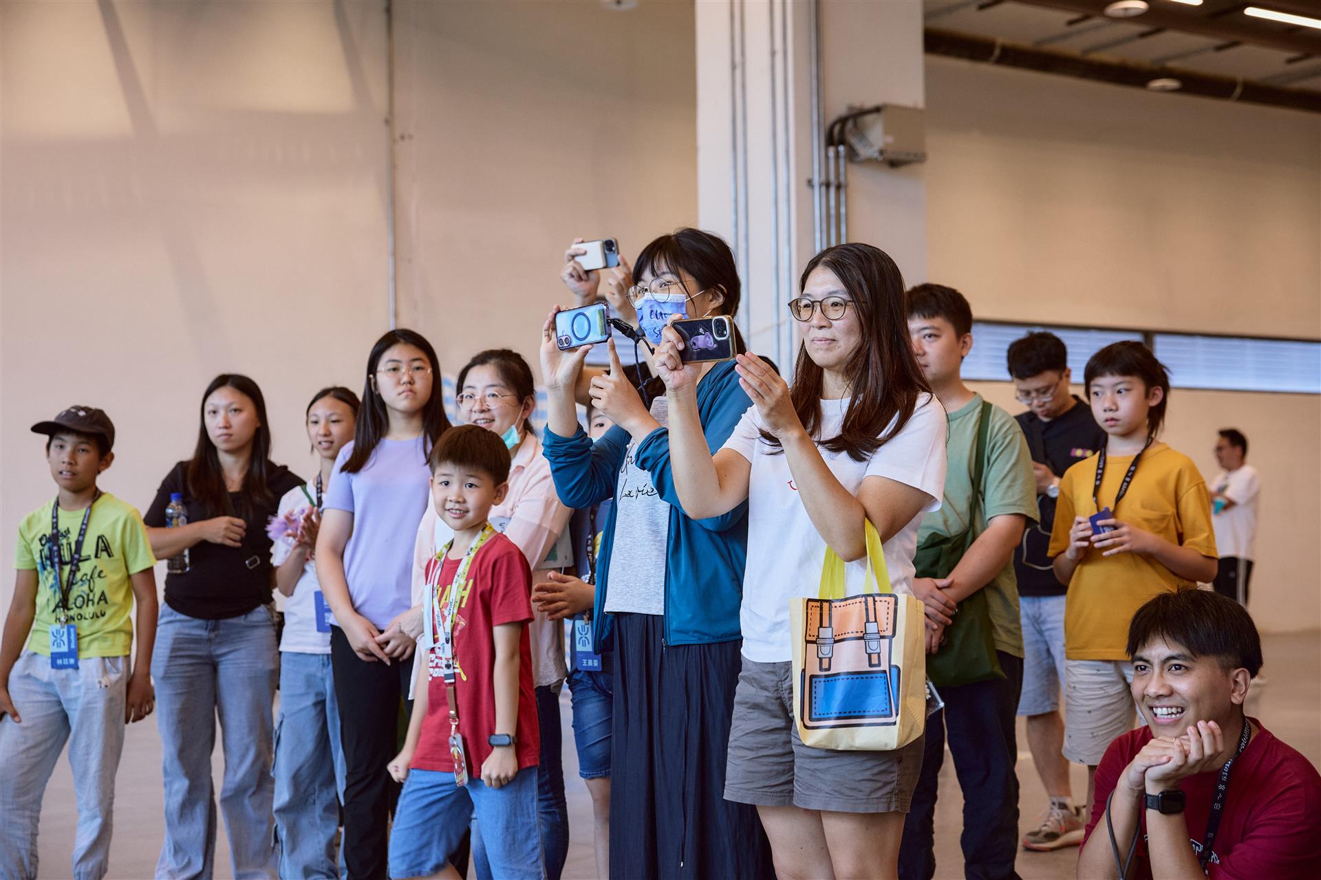 第一組的孩子陸續上台,其中一位男孩走了幾步,突然停下腳步、雙唇緊抿,害羞地回望爸爸⋯⋯只見爸爸以眼神傳遞力量,輕輕地在背後推了他一把;男孩這才重新邁開腳步,追上已先行上台的組員們。